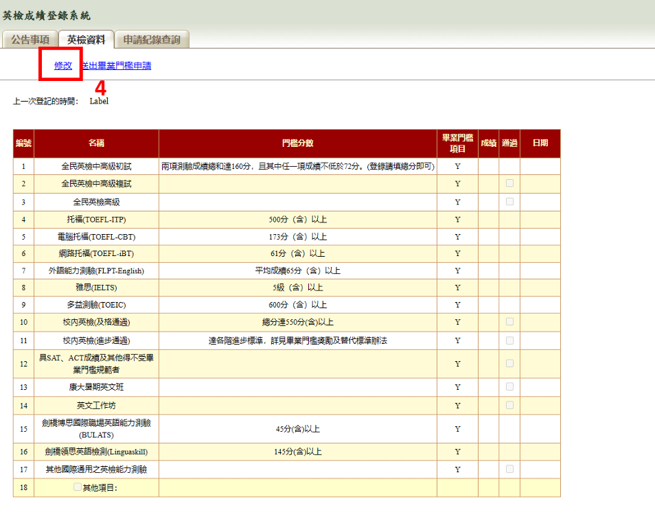 ※如曾參加過校外英檢,需先準備“成績”及“考試日期”才能填寫。